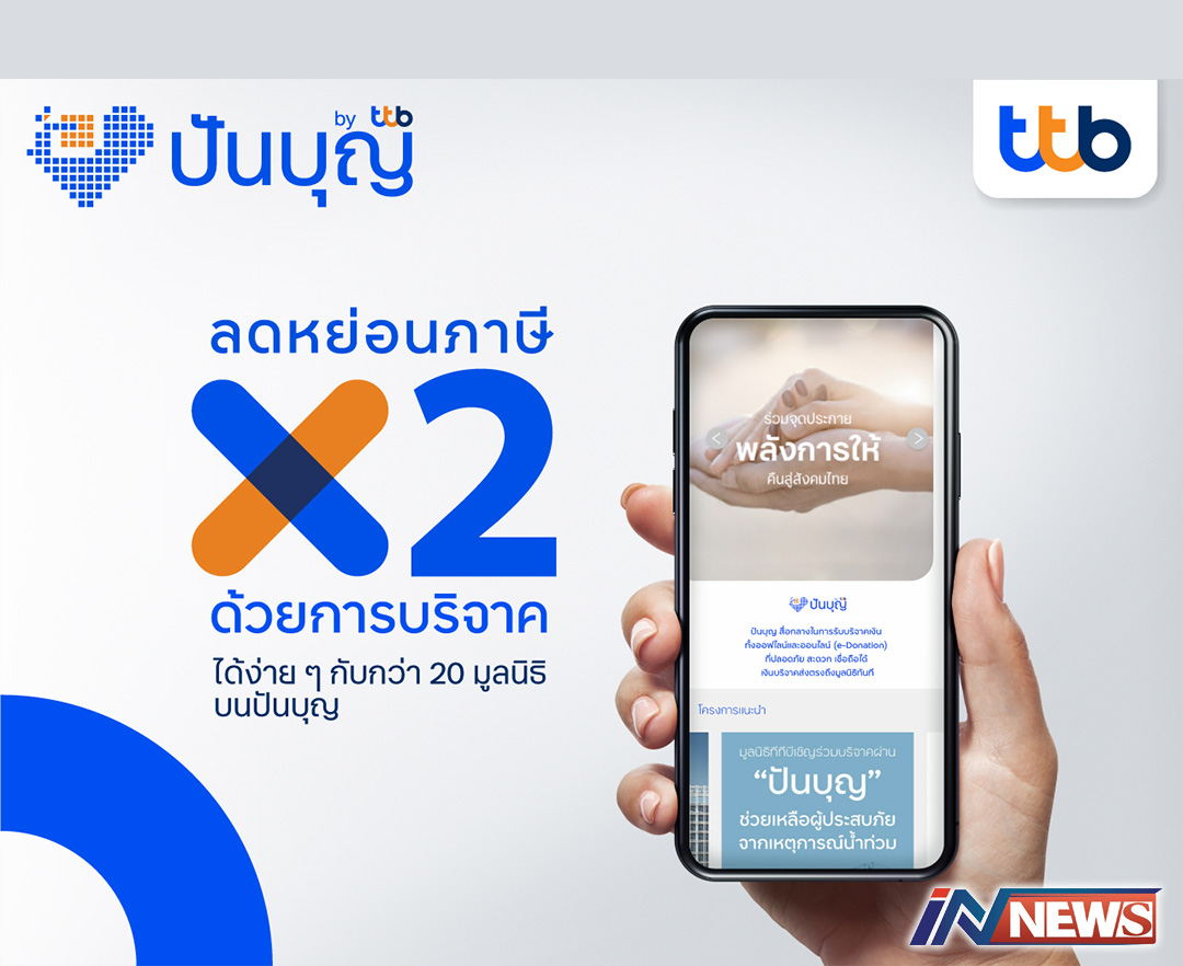 โค้งสุดท้ายปี 'ปันบุญ โดย ทีทีบี'ตัวช่วย วางแผนลดหย่อนภาษีแบบง่ายๆ2เท่า