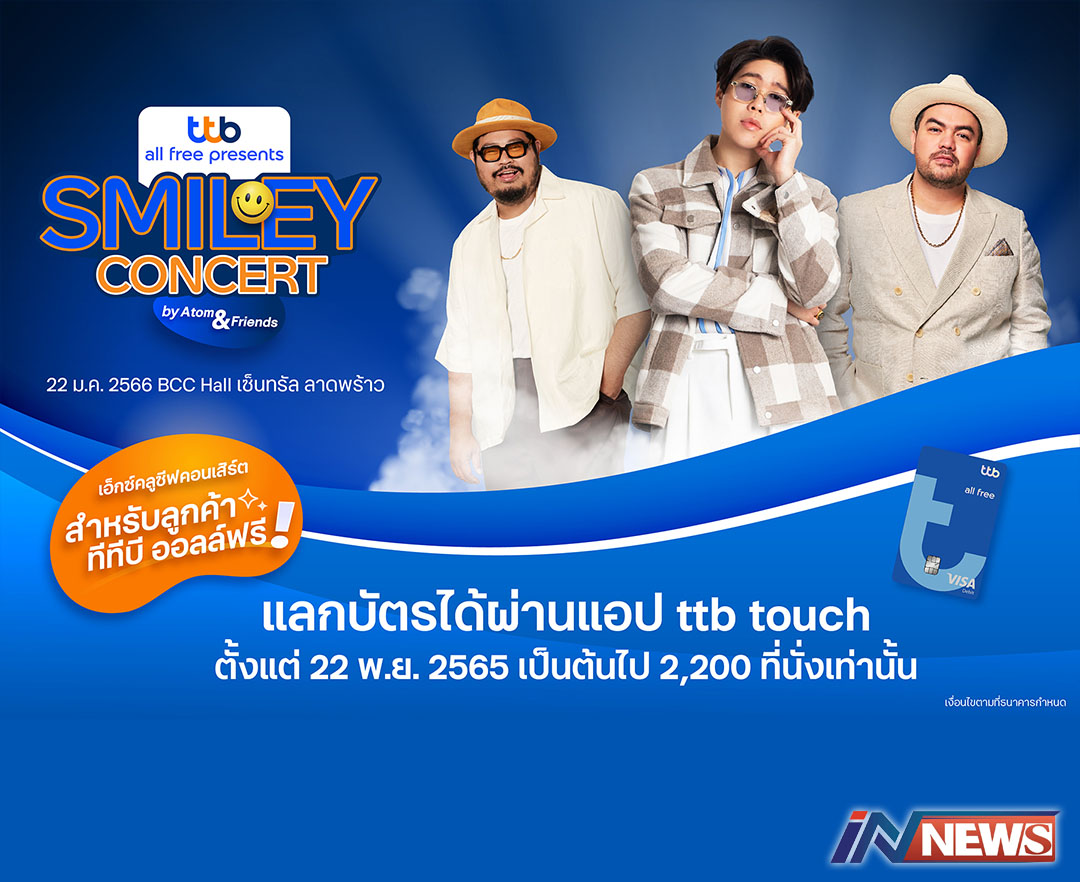 ทีทีบีชวนยิ้มต้อนรับปีใหม่จัดคอนเสิร์ต อะตอม-โอ๊ต-ป็อบเอาใจลูกค้าออลล์ฟรี