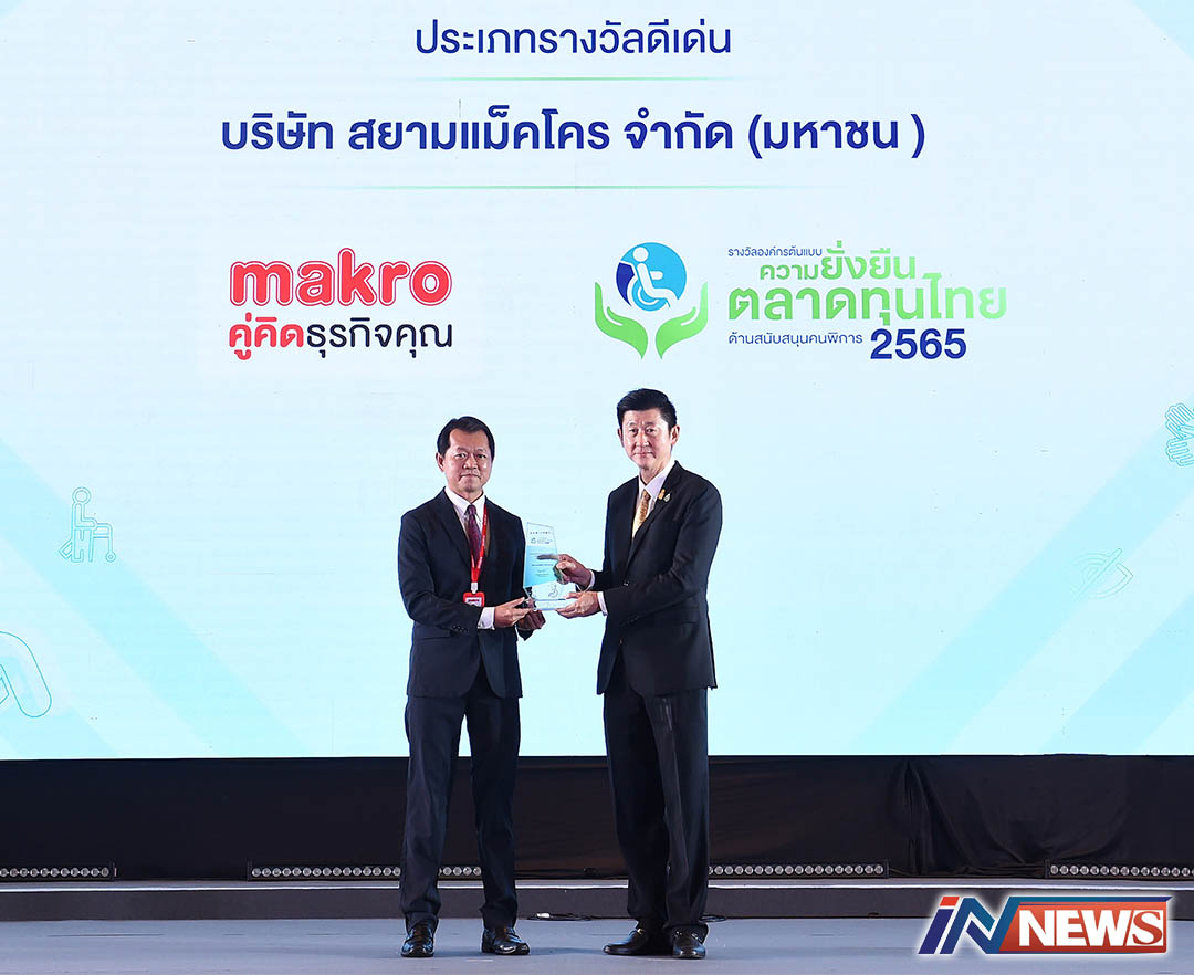 แม็คโครรับโล่องค์กรต้นแบบความยั่งยืน ตลาดทุนไทยสนับสนุนคนพิการปี65