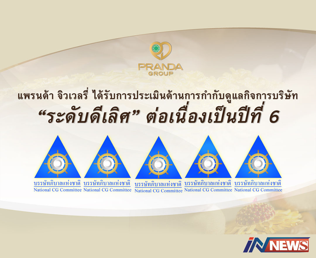 แพรนด้าจิวเวลรี่ได้รับการประเมิน CGR 'ดีเลิศ'ต่อเนื่อง6ปีซ้อน