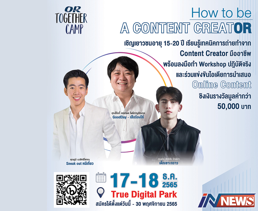 OR ชวนเยาวชนที่มีใจรักทำContent สมัครเข้าร่วมโครงการOR Together Camp