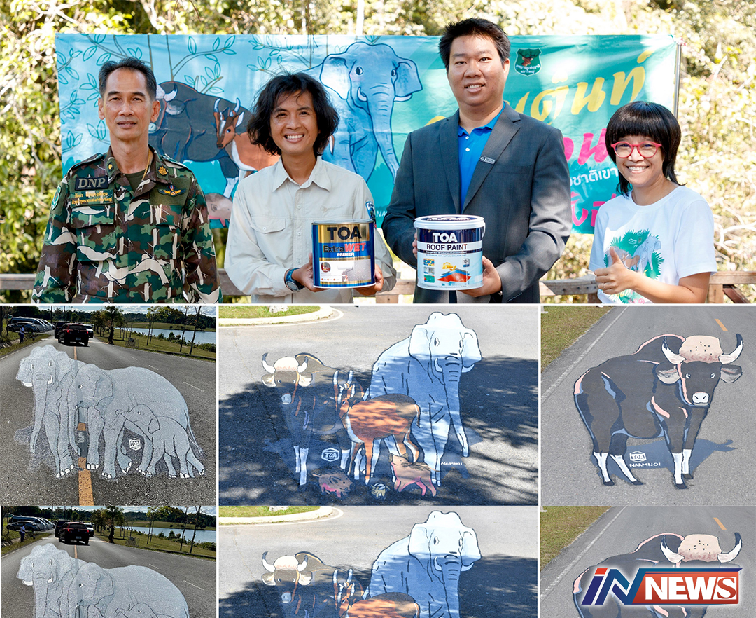 จุดกางเต็นท์จับมือ TOA เพนท์ถนนด้วย ภาพวาดสัตว์ป่า3มิติลดรถชนสัตว์เขาใหญ่