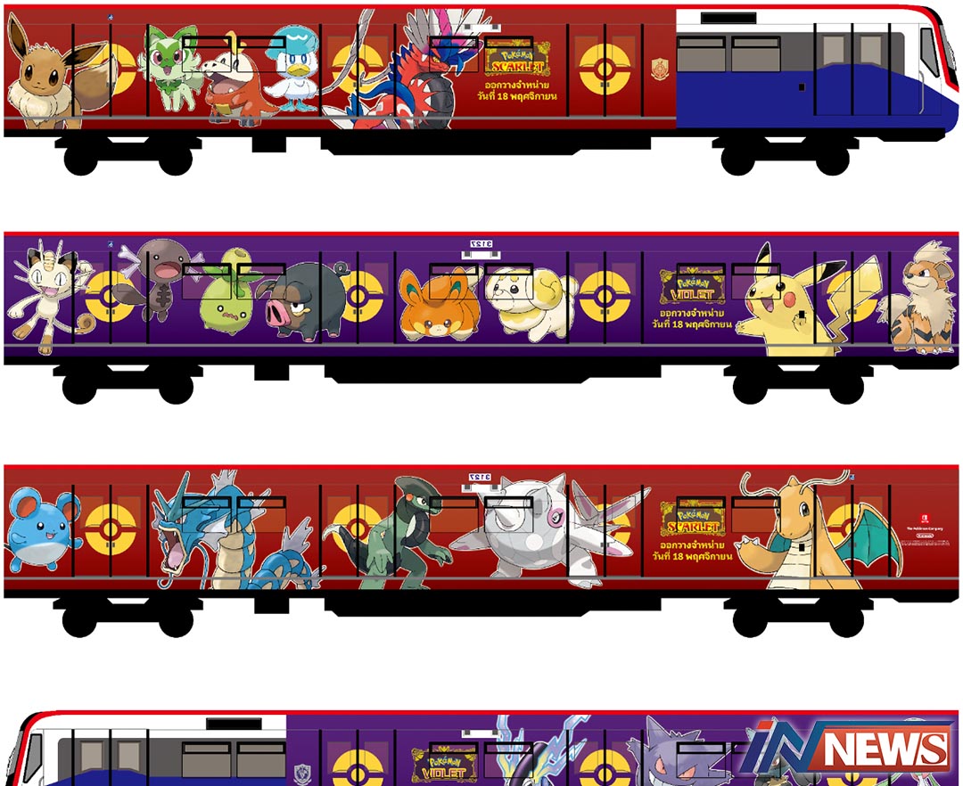 ขบวนรถไฟฟ้า Pokémon Scarlet เริ่มบริการบนรถไฟฟ้าบีทีเอส(BTS)1พ.ย.นี้