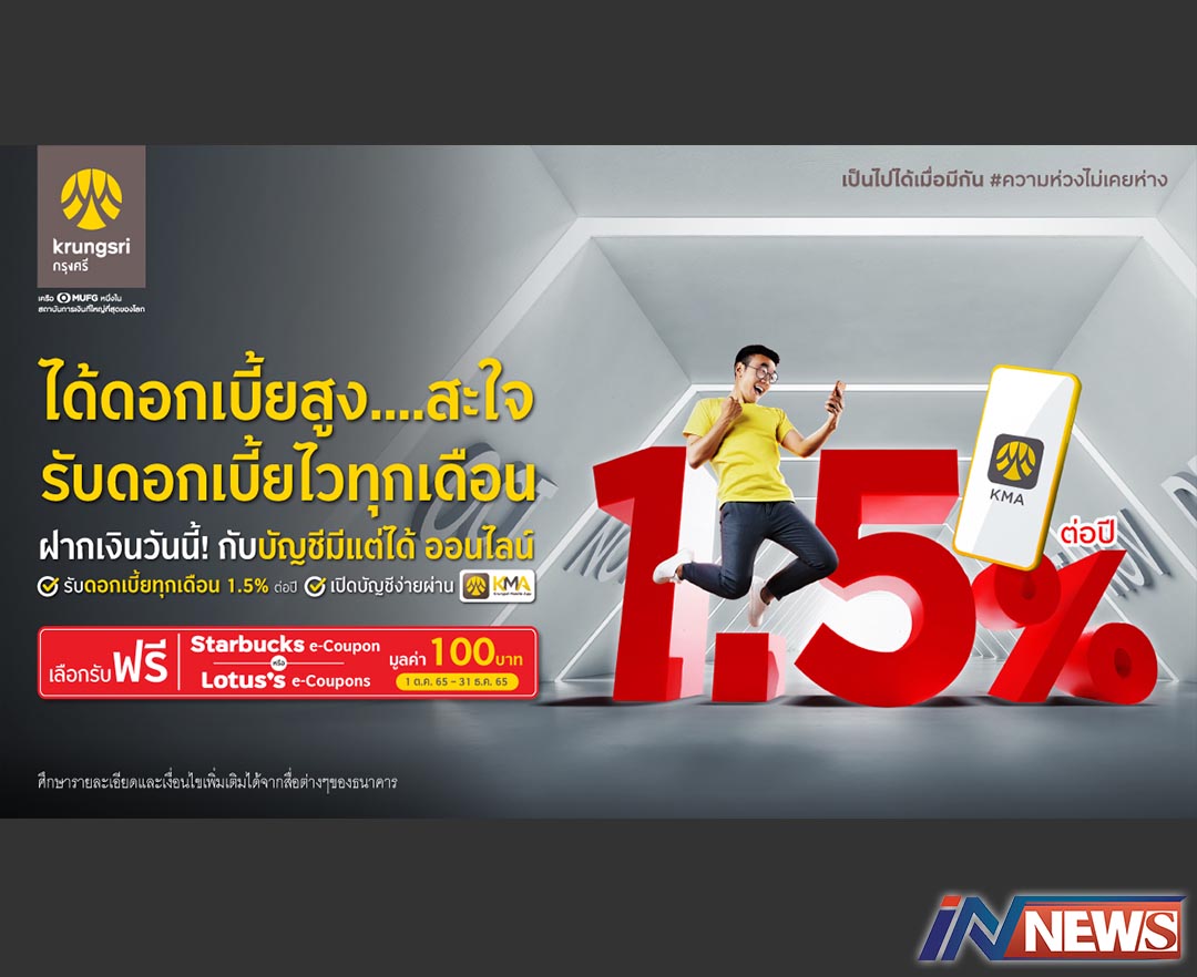 ออมเงินกับกรุงศรีรับดอกเบี้ยสูงสุด1.5% เพียงฝากเงินกับบัญชีมีแต่ได้ออนไลน์