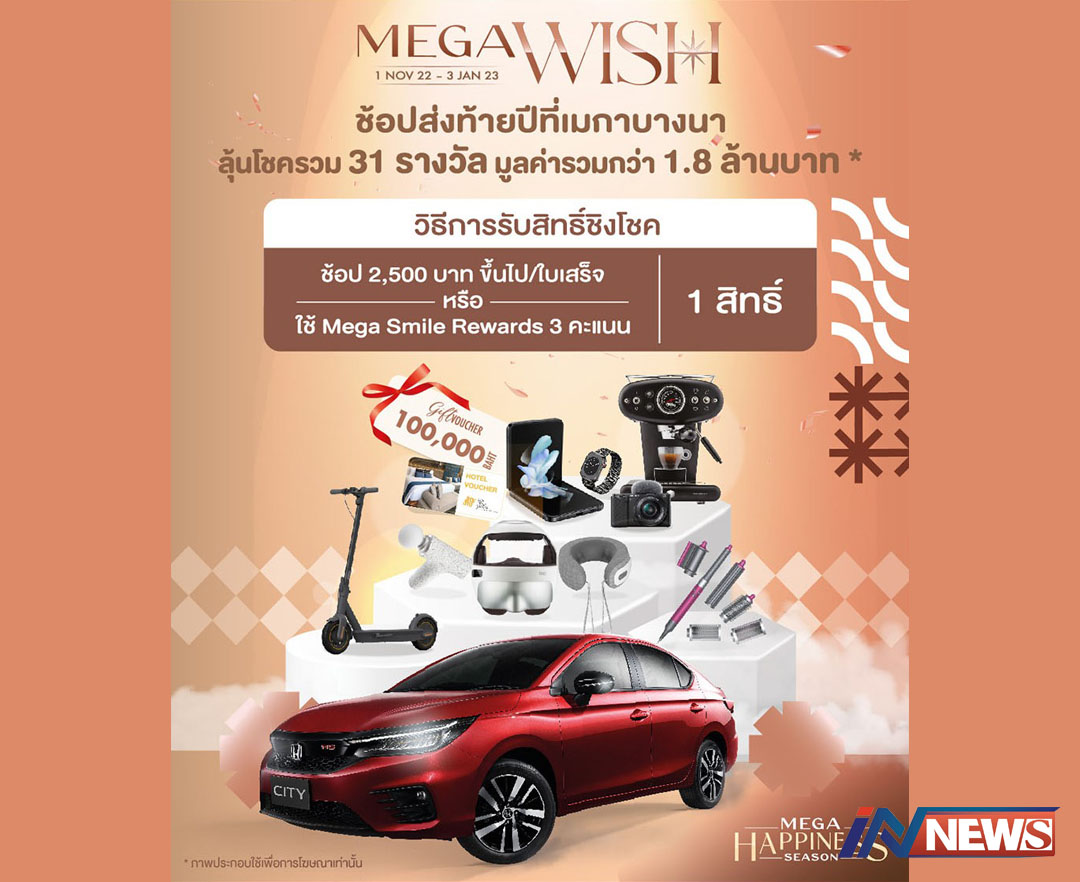 เมก'บางนา'มอบโชคใหญ่ส่งท้ายปีแคมเปญ Mega Wishลุ้นรางวัลรถฮอนด้าซิตี้