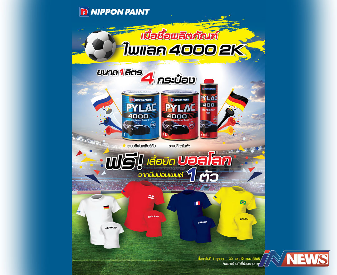 นิปปอนเพนต์แจกฟรีเสื้อยืดบอลโลกเท่! ซื้อไพแลค4000 2K4กระป๋องเท่านั้น