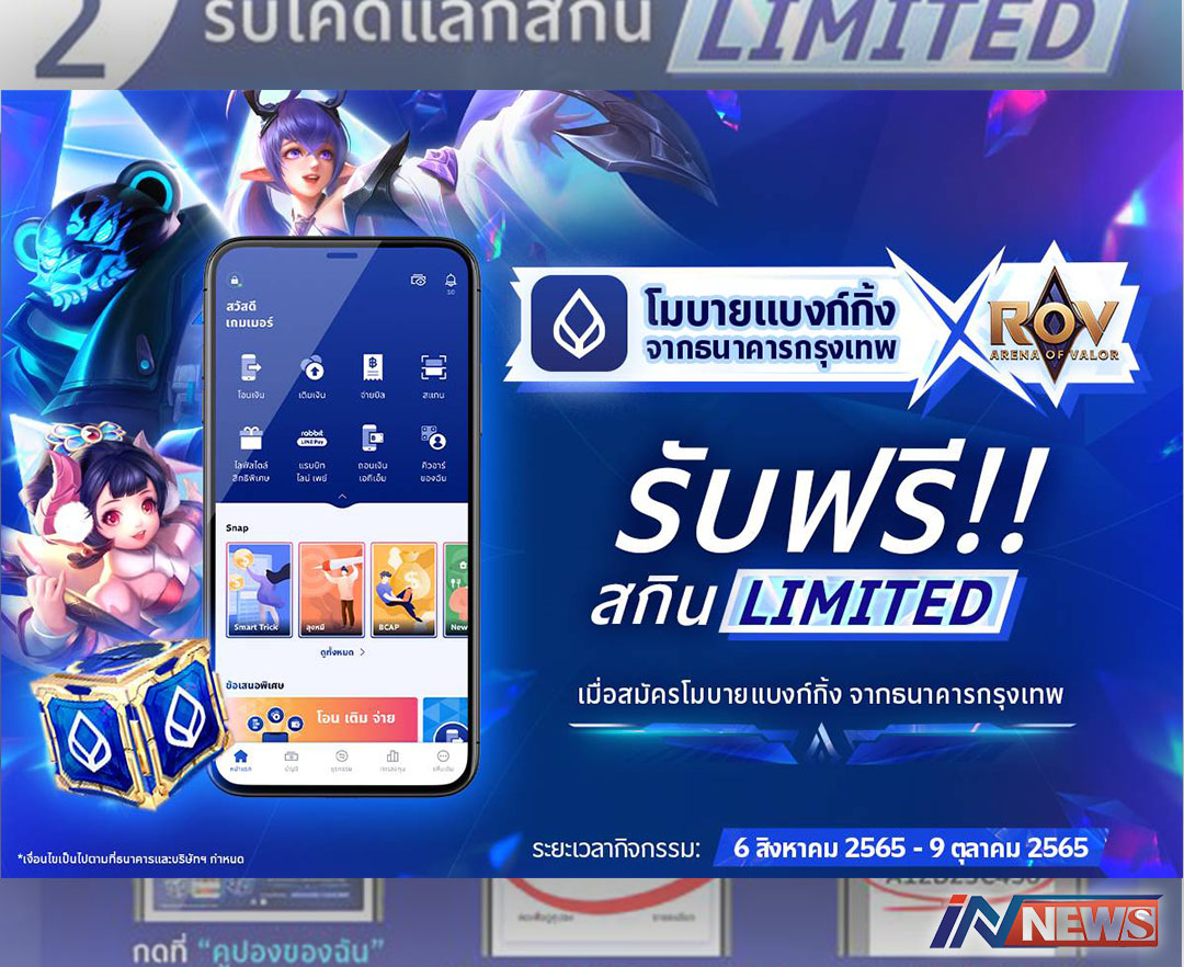 แบงค์กรุงเทพเอาใจสายเกม!กระหน่ำแจก สกิน RoV ระดับ Limited ง่ายๆแต่สมัคร