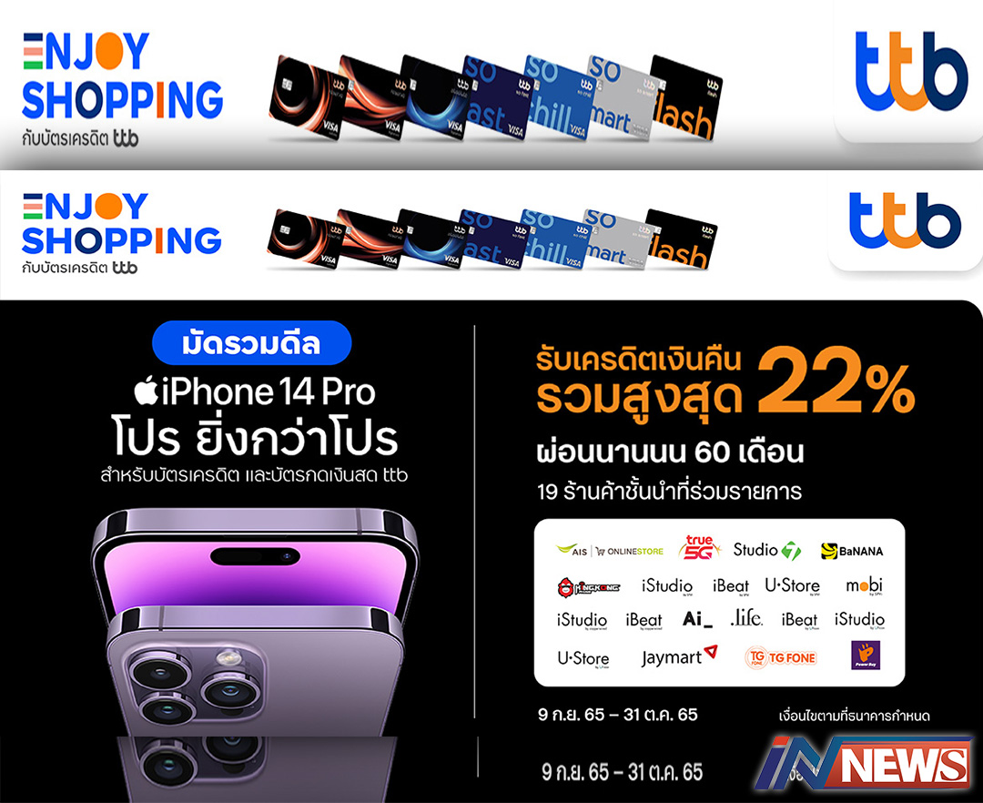 บัตรเครดิต-บัตรกดเงินสดทีทีบีมอบดีล สาวกApple ซื้อiPhone14ผ่อน60เดือน
