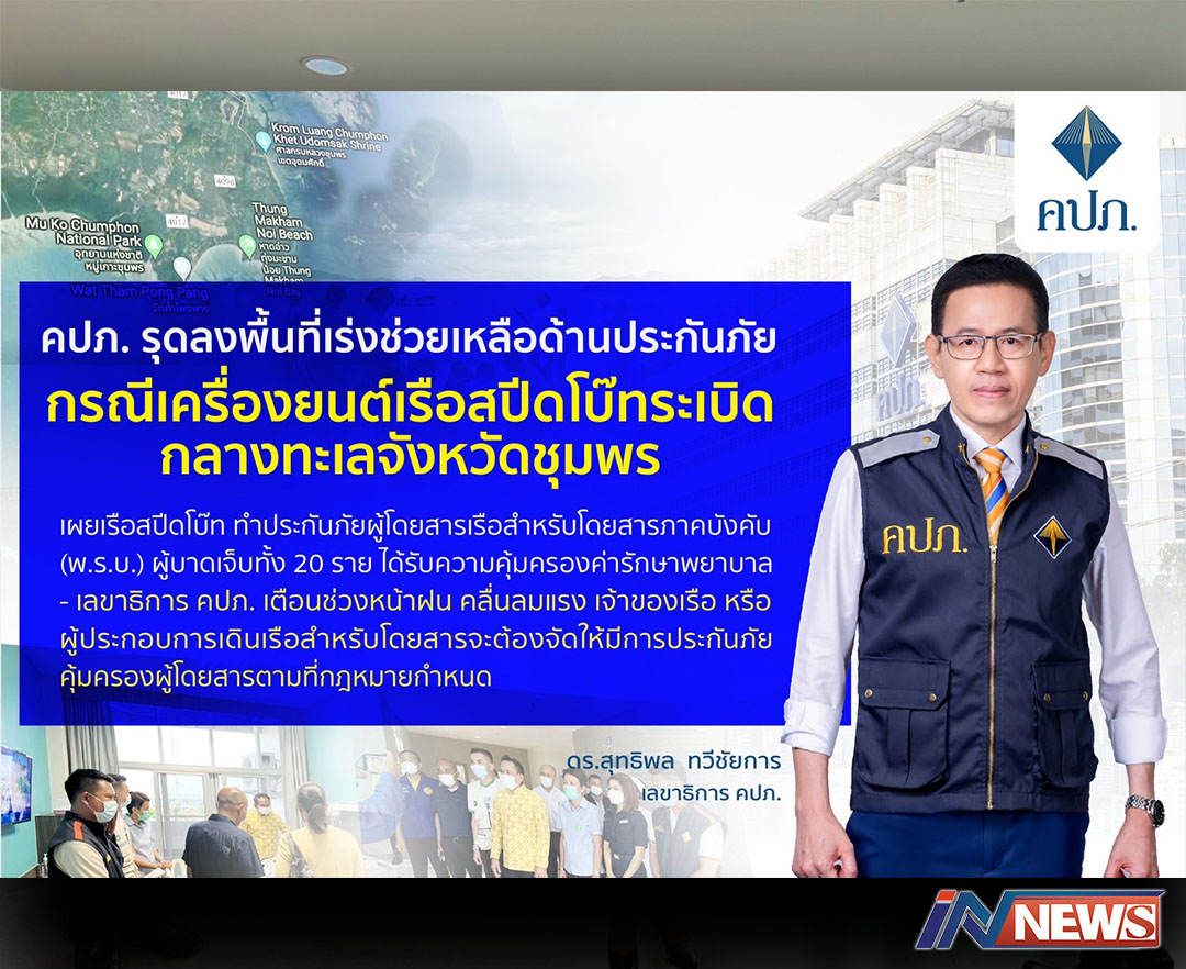 คปภ.รุดลงพื้นที่เร่งช่วยเหลือประกันภัย เรือสปีดโบ๊ทระเบิดกลางทะเลชุมพร