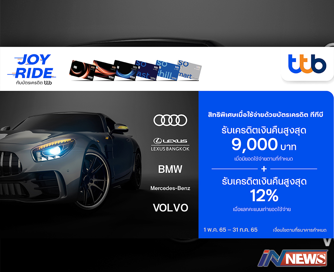 บัตรทีทีบีเสิร์ฟความคุ้มค่าระดับพรีเมียม ให้ลูกค้าที่จองรถคืนสูงสุด9พันบาท