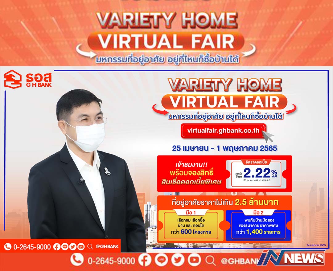 กรุงเทพฯ-ธนาคารอาคารสงเคราะห์ จัดงาน VARIETY HOME VIRTUAL FAIR มหกรรมที่อยู่อาศัยออนไลน์จาก ธอส. ไม่ว่าจะอยู่ที่ไหนก็ซื้...