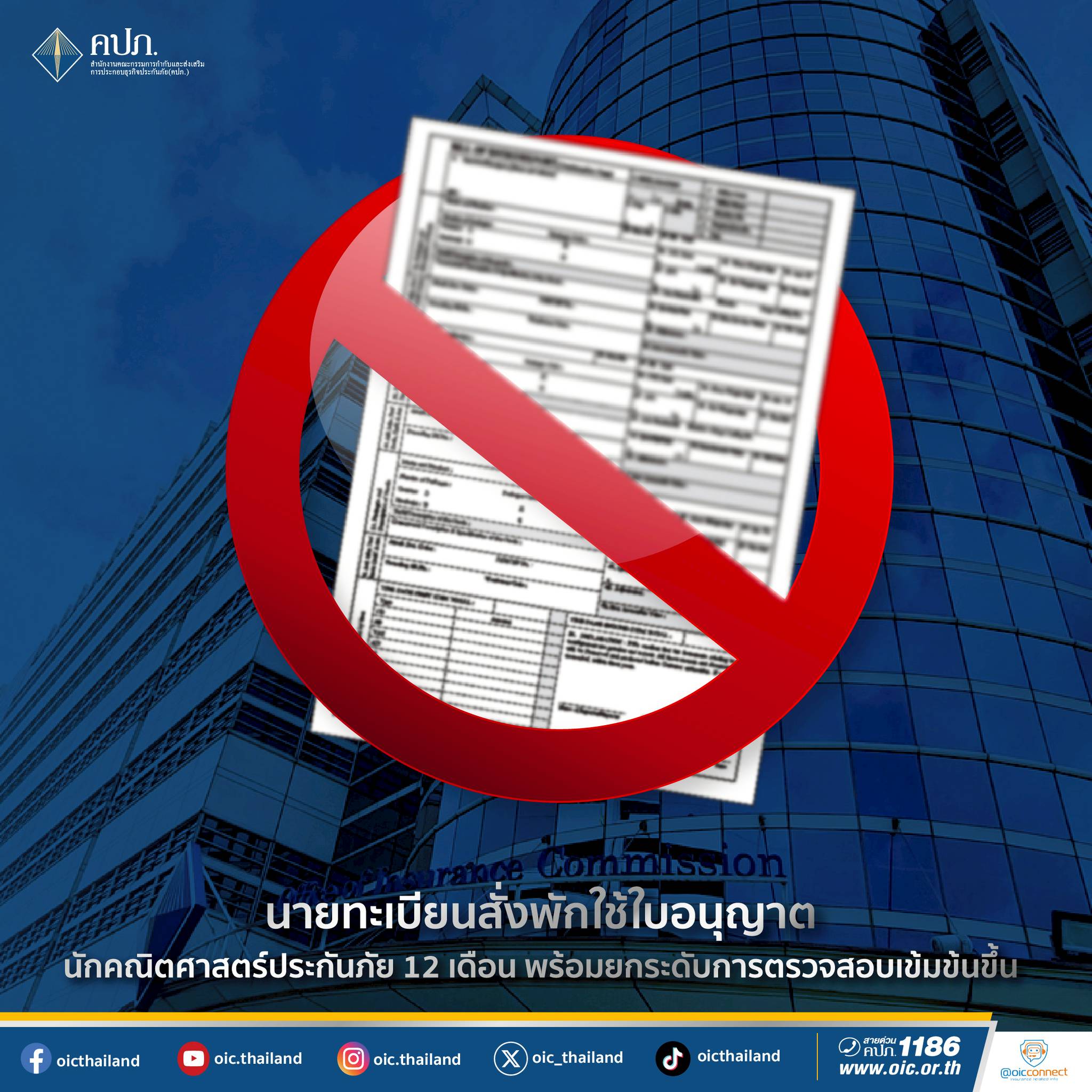 นายทะเบียนตรวจเข้มสั่งพักใช้ใบอนุญาต นักคณิตศาสตร์ประกันภัย12เดือน