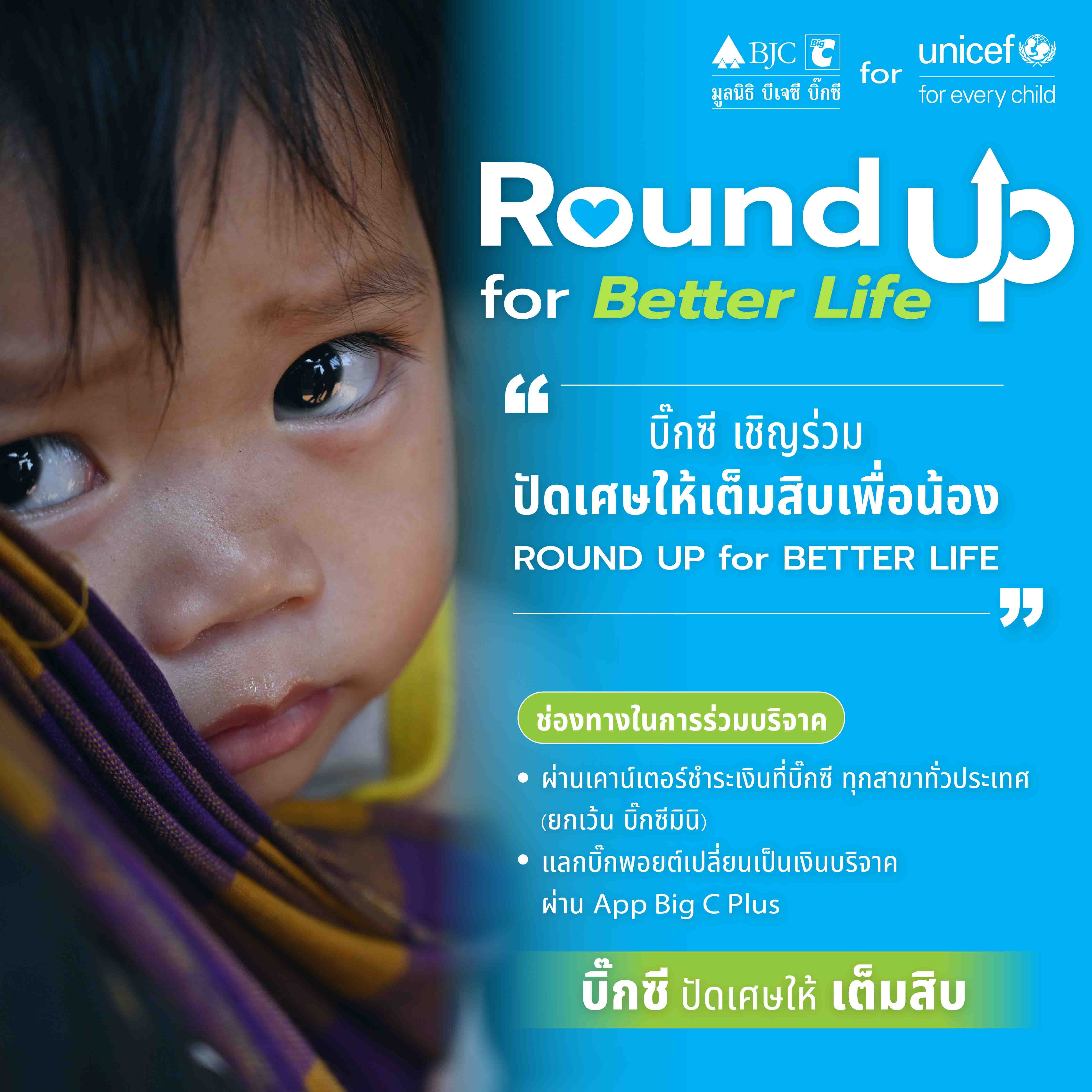 มูลนิธิบีเจซี บิ๊กซีร่วมกับยูนิเซฟชวนร่วม 'ปัดเศษให้เต็มสิบเพื่อน้อง'