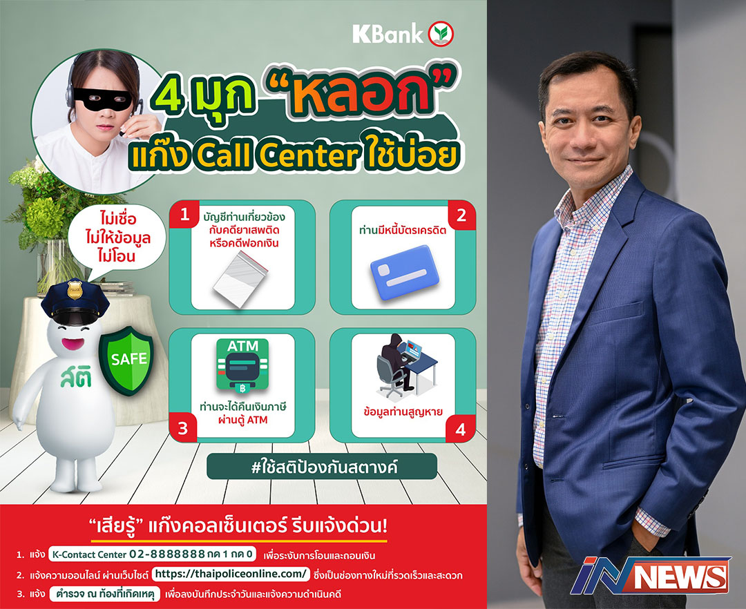 กสิกรไทยเตือนมุกใหม่แก๊งคอลเซ็นเตอร์ ลูกค้าถูกหลอกสูญเงินกว่า6แสนบาท