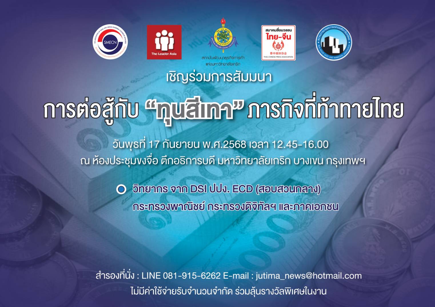 สมาคมสื่อฯไทย-จีนจับมือกับ3พันธมิตร จัดสัมมนา'การต่อสู้กับทุนสีเทา'17ก.ย.นี้