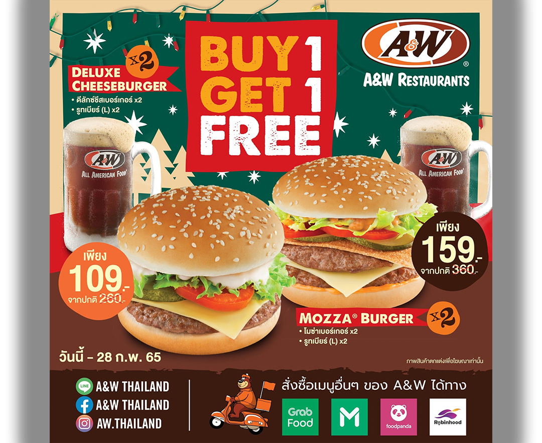กรุงเทพฯ-ฉลองเทศกาลส่งความสุขท้ายปี A&W Thailand จัดหนักกับ BUY 1 GET 1 FREE! โปรโมชั่นสุดปัง ฉล...