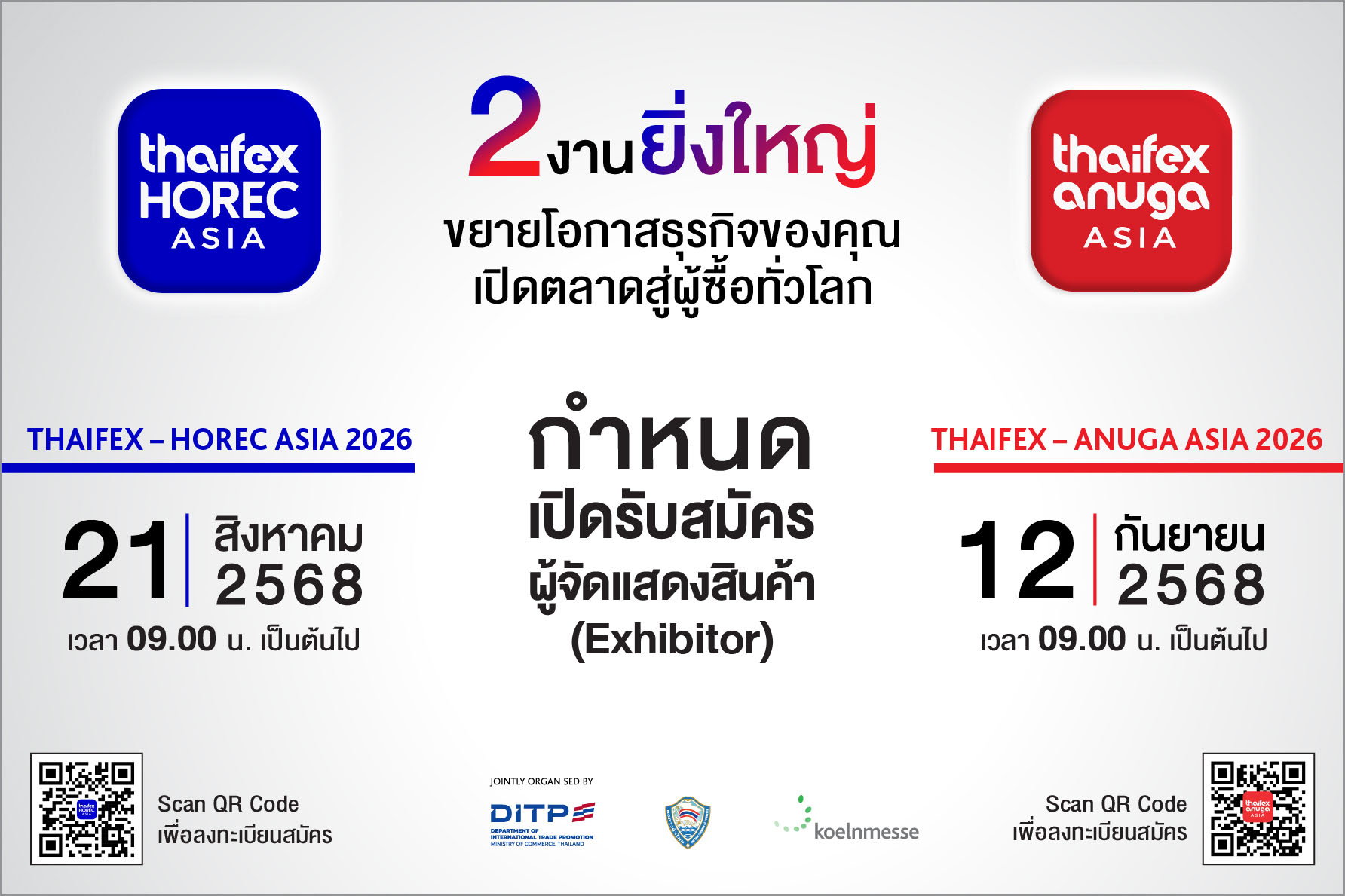 เปิดจองพื้นที่2งานใหญ่THAIFEX2026 ชวนผปก.คว้าโอกาสและเพิ่มยอดขาย