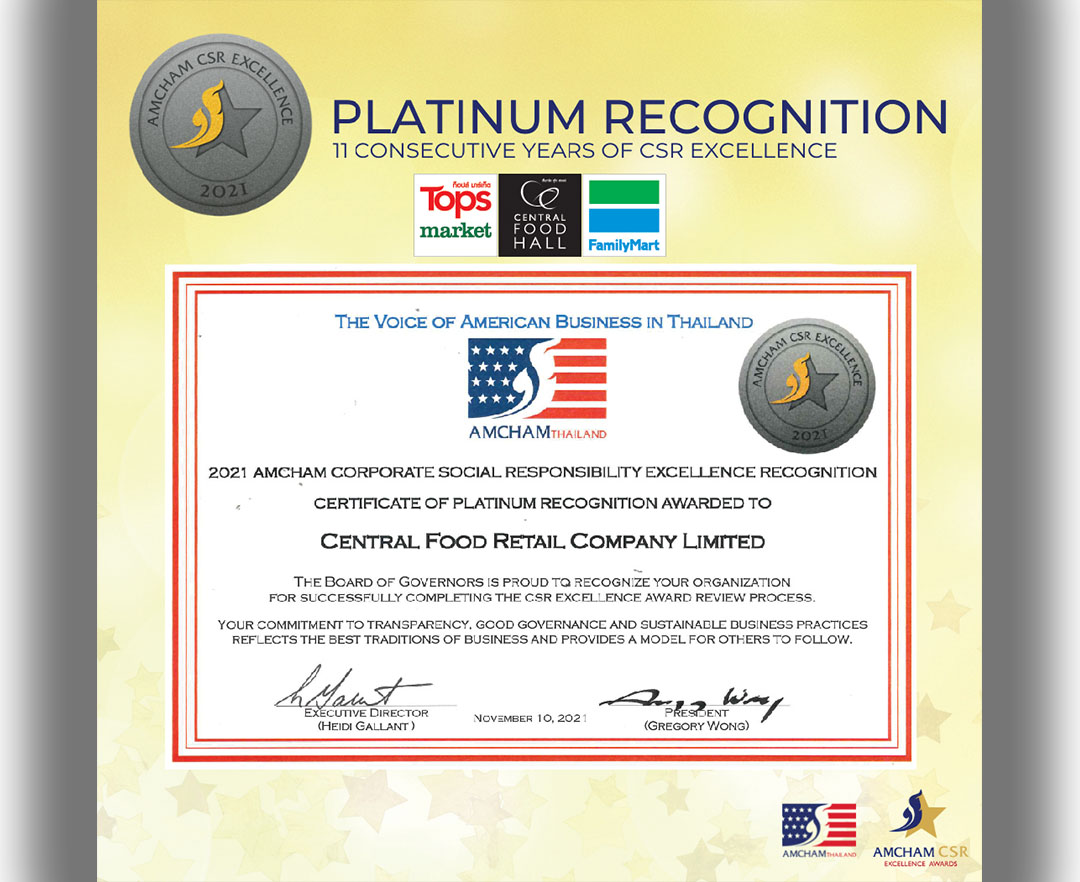 เซ็นทรัล ฟู้ด รีเทลคว้ารางวัลต่อเนื่อง11ปี รับผิดชอบต่อสังคม-สิ่งแวดล้อม