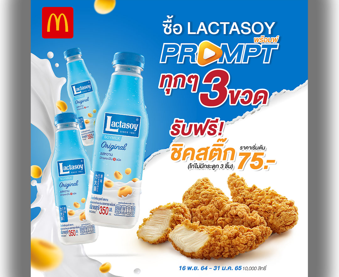 “แลคตาซอย พร้อมพ์” ชวนมาอิ่มอร่อยแบบคุ้มสุดๆซื้อ 3 ขวด รับไก่ไม่มีกระดูก 3 ชิ้น เฉพาะที่...