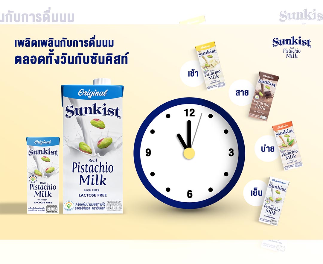 'ซันคิสท์'ชวนคนเพลิดเพลินกับการดื่มนม ดื่มทั้งวันสุขภาพดีนมพิสทาชิโอมี5รส