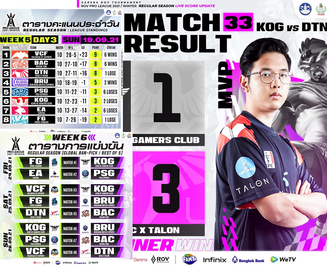 กรุงเทพฯ-เรามาอยู่กันในสัปดาห์ที่ 5 ของการแข่งขัน RoV Pro League 2021 Winter การแข่งขัน RoV ระดับมืออาชีพ ชิงเงินรางวัลร...