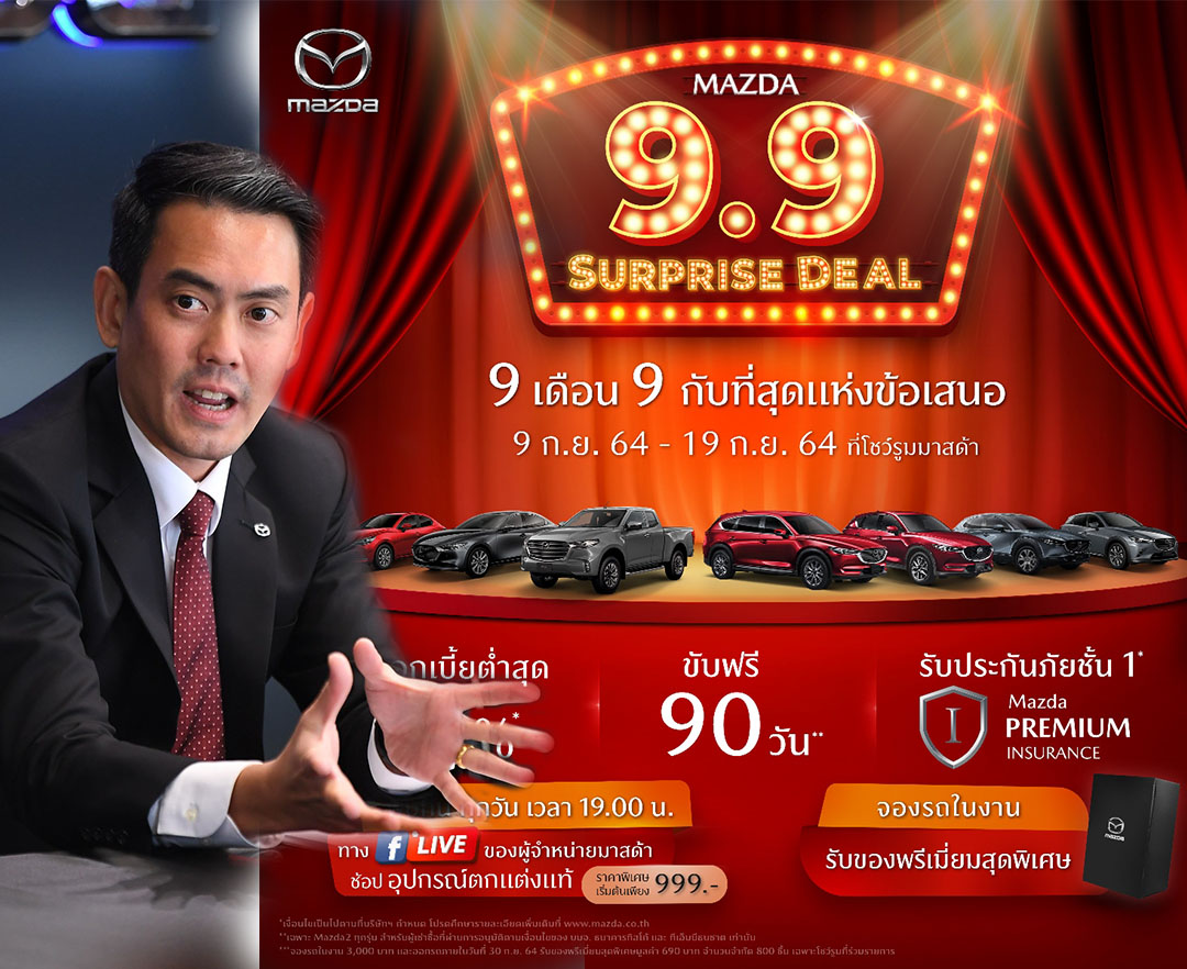 กรุงเทพฯ, ประเทศไทย – วันที่ 7 กันยายน 2564 – มาสด้าอัดแคมเปญแรง “Mazda 9.9 Surprise Deal” 9 เดื...