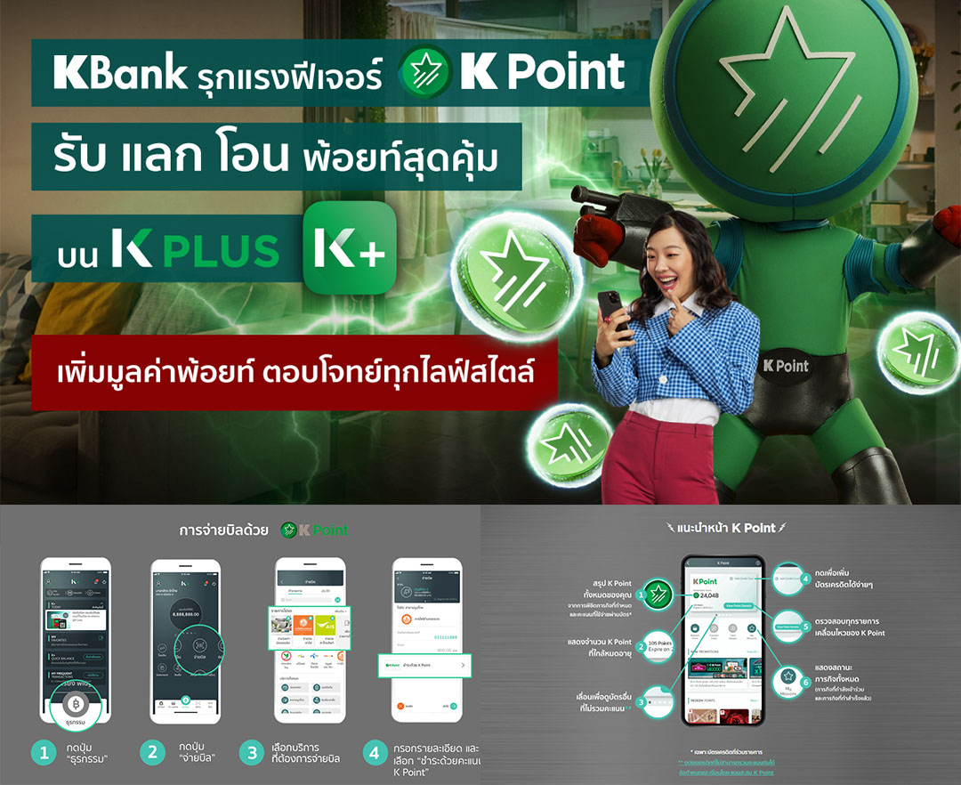 KBankชูฟีเจอร์KPointรับแลกโอนพ้อยท์ บนKPLUSเพิ่มพ้อยท์มัดใจลูกค้า