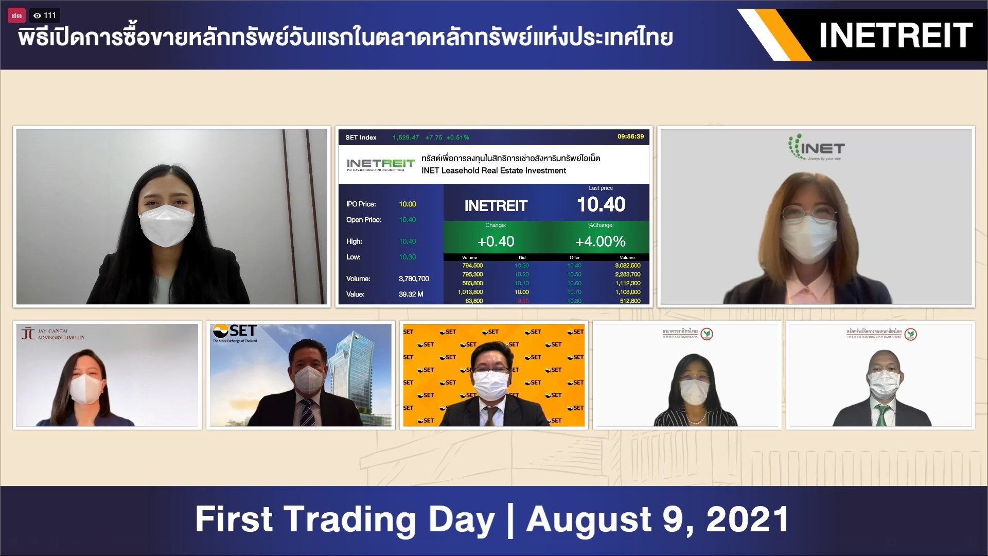 กสิกรไทยยินดีINETREITขึ้นเทรดวันแรก