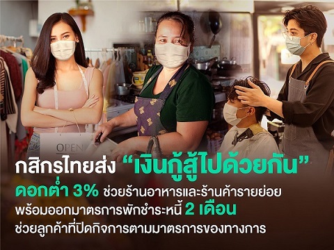 กสิกรไทยส่งเงินกู้สู้ไปด้วยกันดอกต่ำ3% ช่วยร้านอาหาร-ร้านค้ารายย่อย