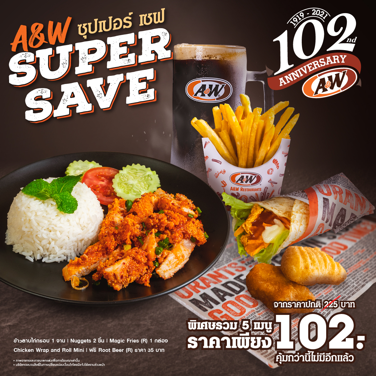 กรุงเทพฯ-SUPER SAVE! เซฟสุดๆ กับโปรโมชั่นฉลอง 102 ปี A&Wในราคาเบาๆ แต่ได้ถึง 5&n...