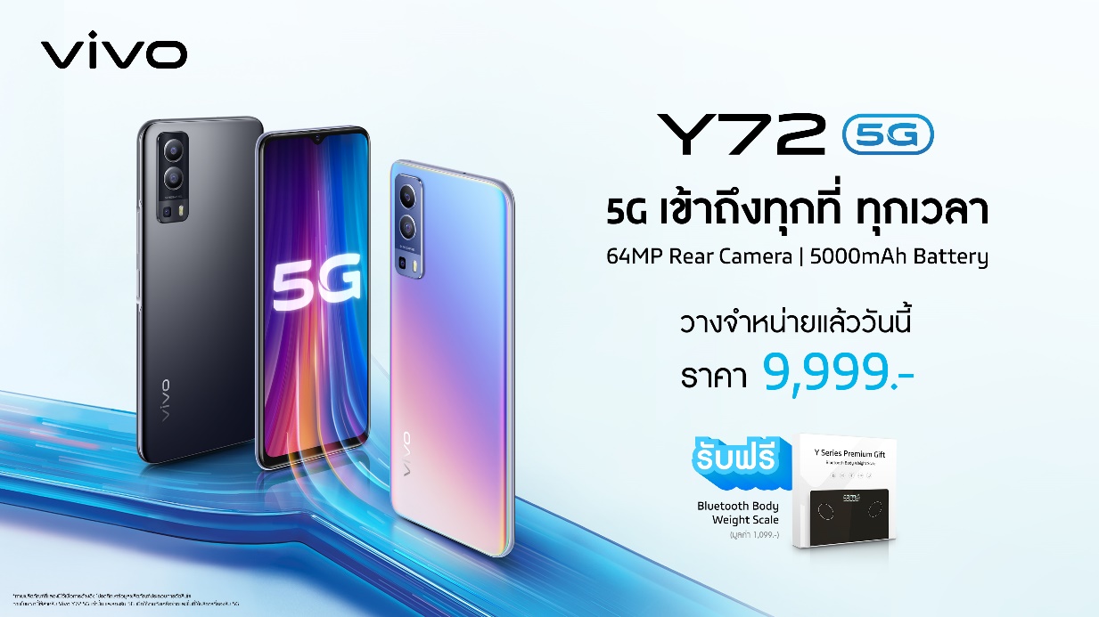 กรุงเทพฯ- Vivo แบรนด์สมาร์ตโฟนชั้นนำระดับโลก ประกาศวางจำหน่าย Vivo Y72 5G สมาร์ตโฟนรุ่นล่าสุดจากตระก...