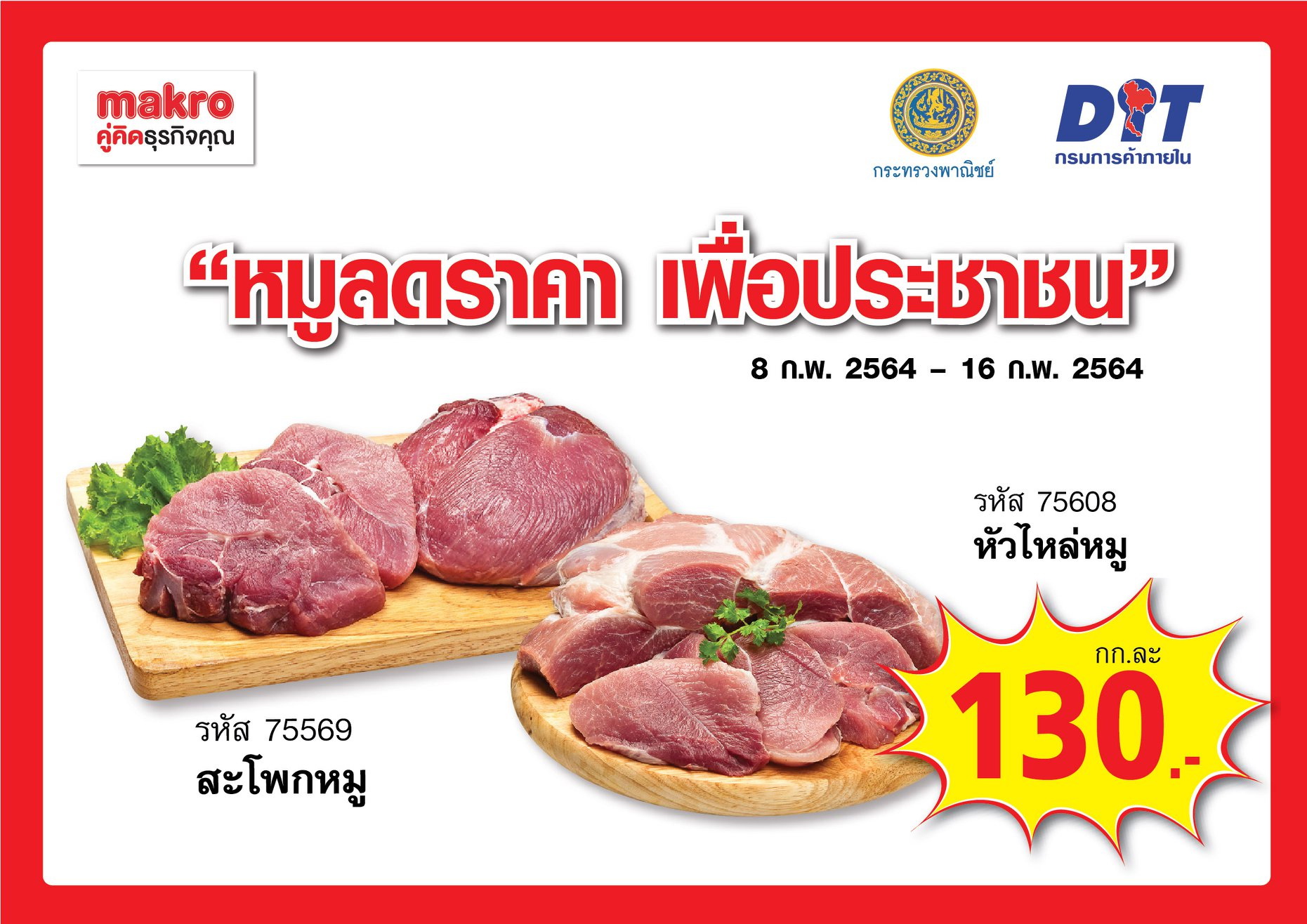 'แม็คโคร'ขานรับก.พาณิชย์ตรึงราคาหมู ช่วงตรุษจีนเนื้อแดงโลละ130ถึง16ก.พ.นี้
