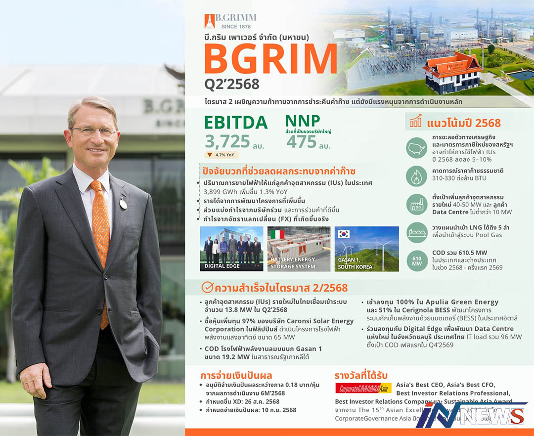 บี.กริมเพาเวอร์เผยผลดำเนินงานQ2/68 ลูกค้าอุตฯแกร่งเพิ่มพันธมิตร-เปิดCOD