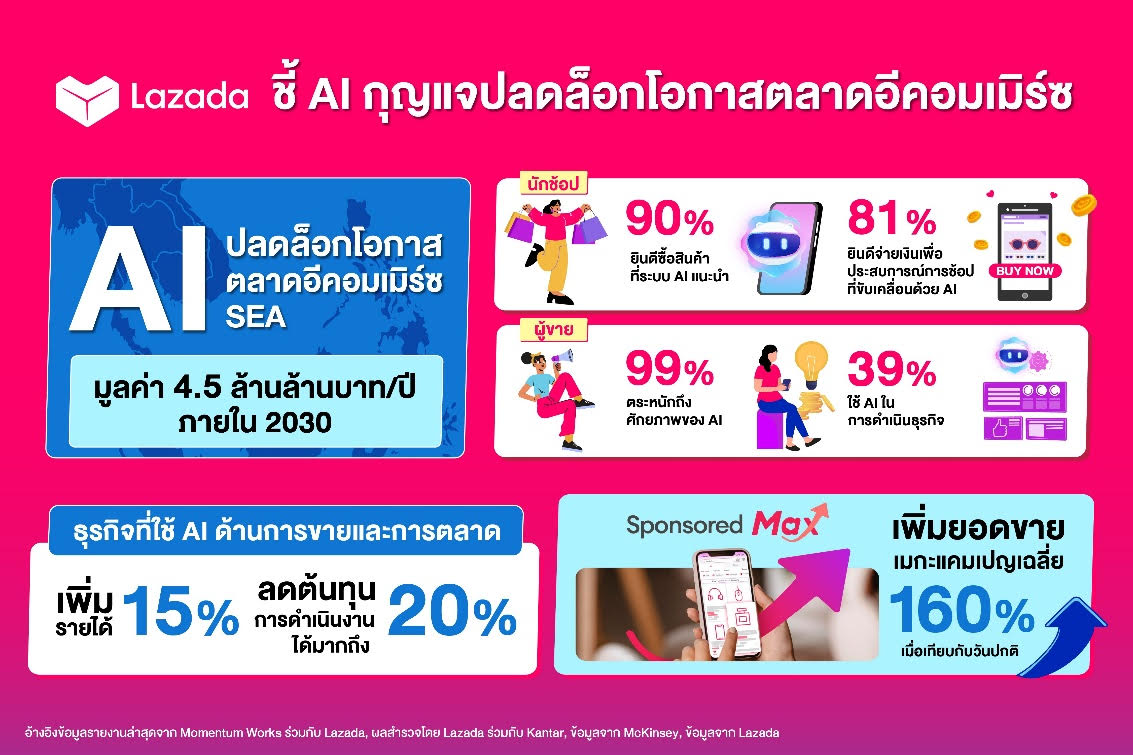 ลาซาด้าชี้AIกุญแจปลดล็อกโอกาสตลาด อีคอมฯ4.5ล้านล้านชูผู้ขายไทย61%