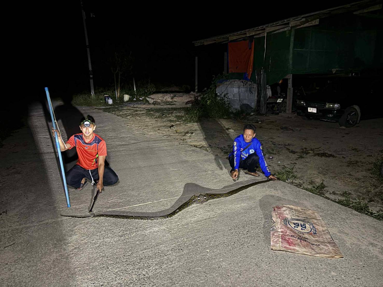 เหลือมเกือบ4เมตรบุกกินไก่ถึงหน้าบ้าน ร้อนถึงทีมอาสาพิทักษ์งู ต้องมาจับ