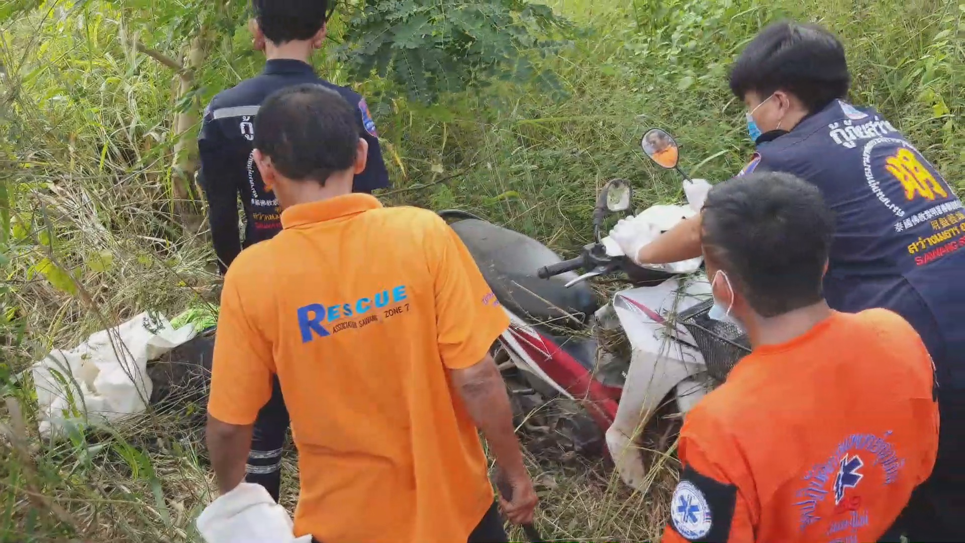 อุดรธานี-หนุ่มช่างเชื่อมซิ่งรถจยย. แหกโค้งล้มตกลงไปข้างทางชนกับต้นไม้นอนตายข้ามคืน