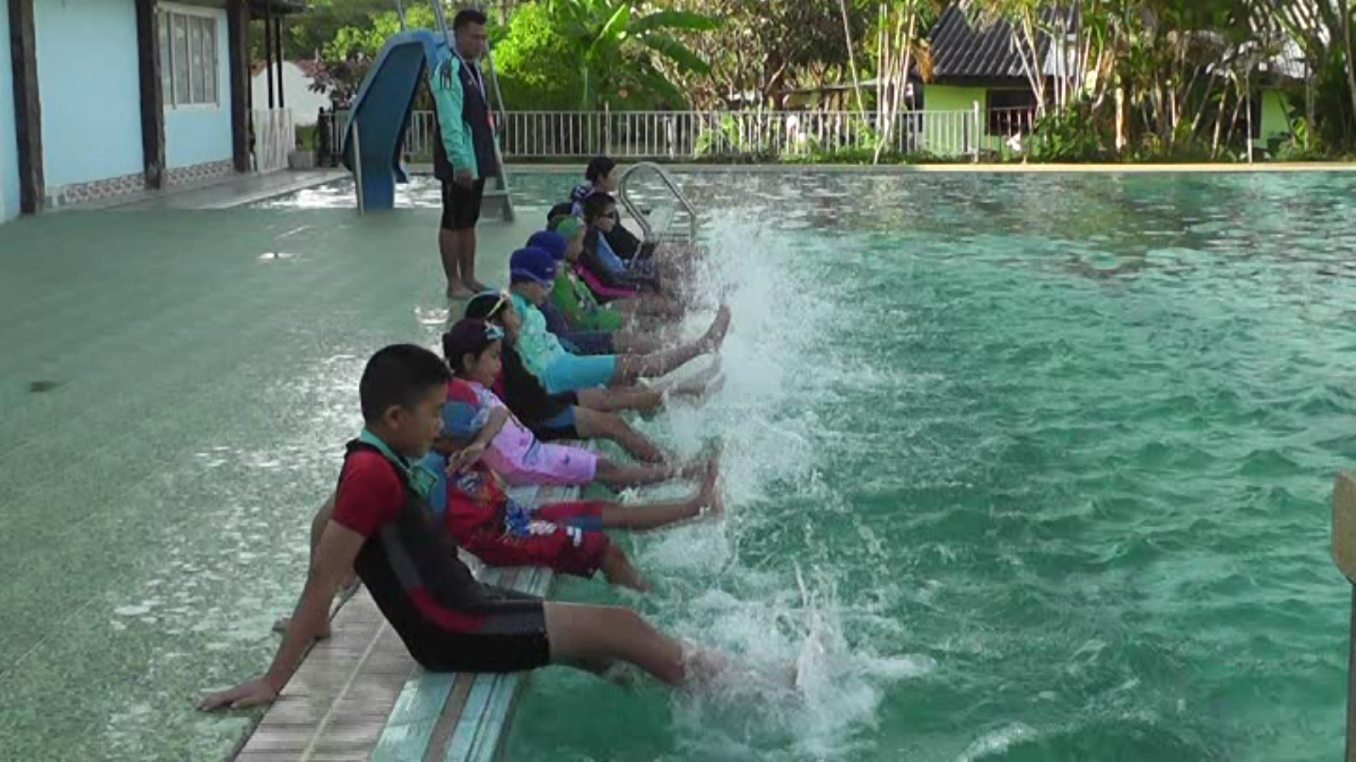 สีสันเด็กอนุบาลฝึกว่ายน้ำช่วยเด็กจมน้ำ น้องไตเติลโชว์ท่าแปลก‘จรวดติดเทอร์โบ’