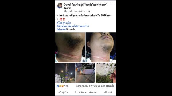 นครราชสีมา-หวิดคอขาดหนุ่มขับมอเตอร์ไซด์กลับบ้านมองไม่เห็นสายอินเตอร์เน็ตโดนบาดคอเป็นแผลฉกรรจ์เตือนอุทาหรณ์ขับรถให้ระวัง