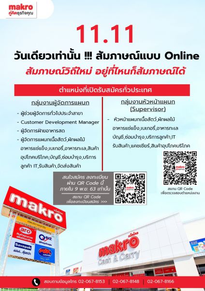 กรุงเทพฯ-แม็คโคร โหนกระแส 11.11 เปิดสัมภาษณ์งานออนไลน์ทั่วประเทศ