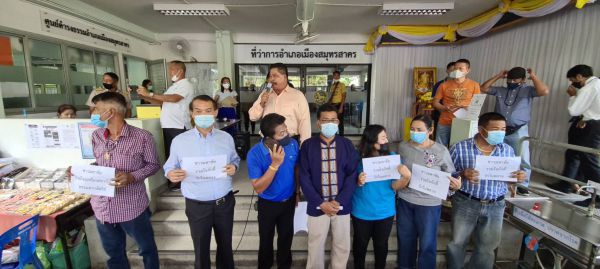 สมุทรสาคร-ประชาชนชาวจังหวัดสมุทรสาครกว่า 300คน ได้ร่วมพลังประกาศเจตนารมณ์ปกป้องสถาบันชาติ ศาสนา พระมหากษัตริย์ ไปยื่นหนั...