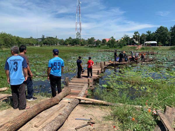 มหาสารคาม-นายอำเภอกันทรวิชัย จังหวัดมหาสารคาม พร้อมจิตอาสาจัดสร้างสะพานเชื่อมจากสวนสาธารณะเฉลิมพระเกียรติ ไปยังเกาะกลางห...