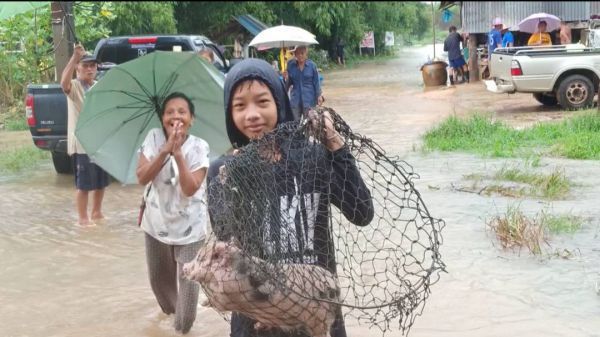 ฝนกระหน่ำทั้งวันกบินทร์ฯท่วมหลายจุด ชาวบ้านขนสิ่งของ-สัตว์เลี้ยงหนีน้ำ