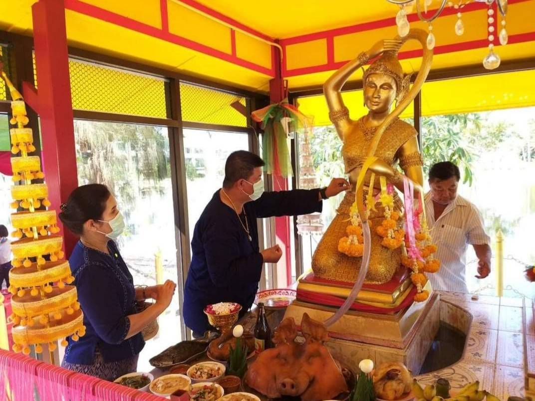 นอภ.คลองเขื่อนจัดทำบุญเป็นสิริมงคล ไหว้พระแม่ธรณีบีบมวยผม-พระแม่โพสพ
