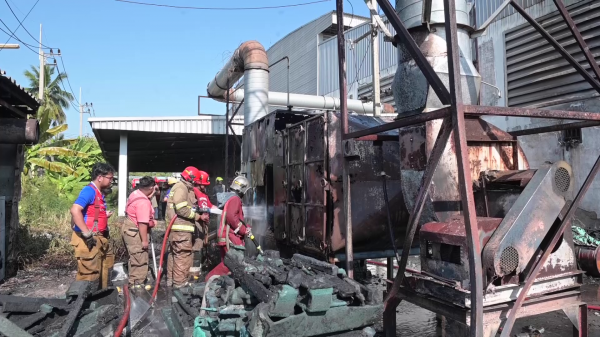 พระเพลิงผลาญโรงงานพาเลทพลาสติก โชคดีระงับเพลิงได้ทันแต่เสียหายนับล้าน