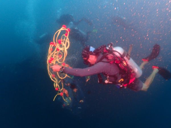 พังงา-สทช.6 นำนักดำน้ำจิตอาสา เก็บกู้เศษซากอวนที่ปกคลุมบริเวณเรือคิงส์ครุยเซอร์ กองหินหมู่สังข์ แหล่งดำน้ำท่องเที่ยวชมปะ...
