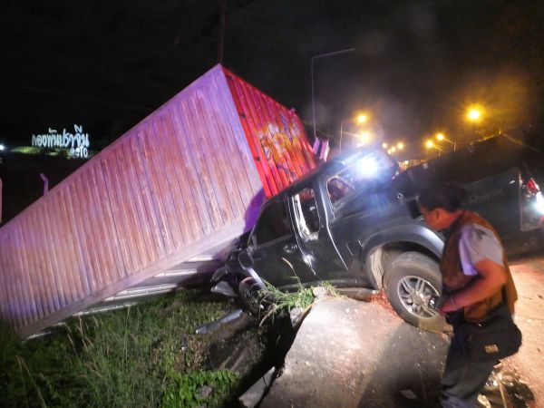 ระวังภัย!ฝนตกถนนลื่นพ่วง18ล้อเขมร เก๋งสวนทางเบรกกะทันหันสาหัส1ตับ1