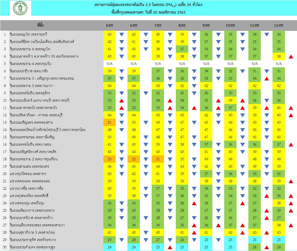 กรุงเทพฯ-ศูนย์ประสานงานและแก้ไขปัญหามลพิษทางอากาศของกรุงเทพมหานครสรุปผลการตรวจวัด PM2.5 (3 ชั่วโมงล่าสุด)