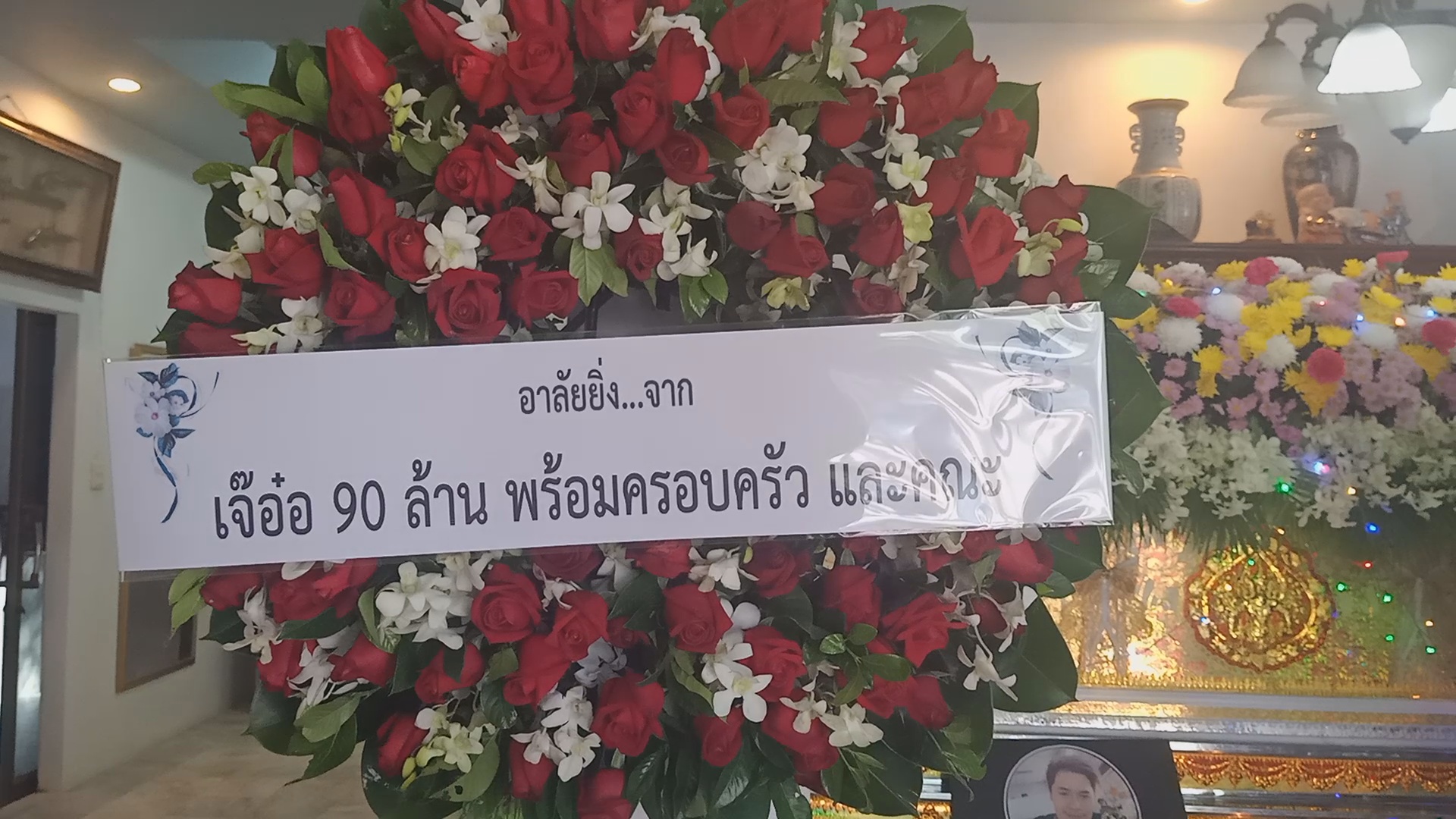 ‘เจ๊อ๋อ90ล้าน’อาลัยรักในงานศพเสี่ยเต้ยส่งพวงหรีดกุหลาบแดงนาฬิกาแขวน