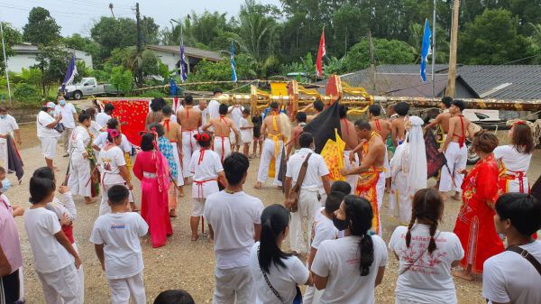 ชาวตะกั่วป่าทำพิธียกเสาโกเต้ง บอกสัญญาณเริ่มกินเจตะกั่วป่าแล้ว