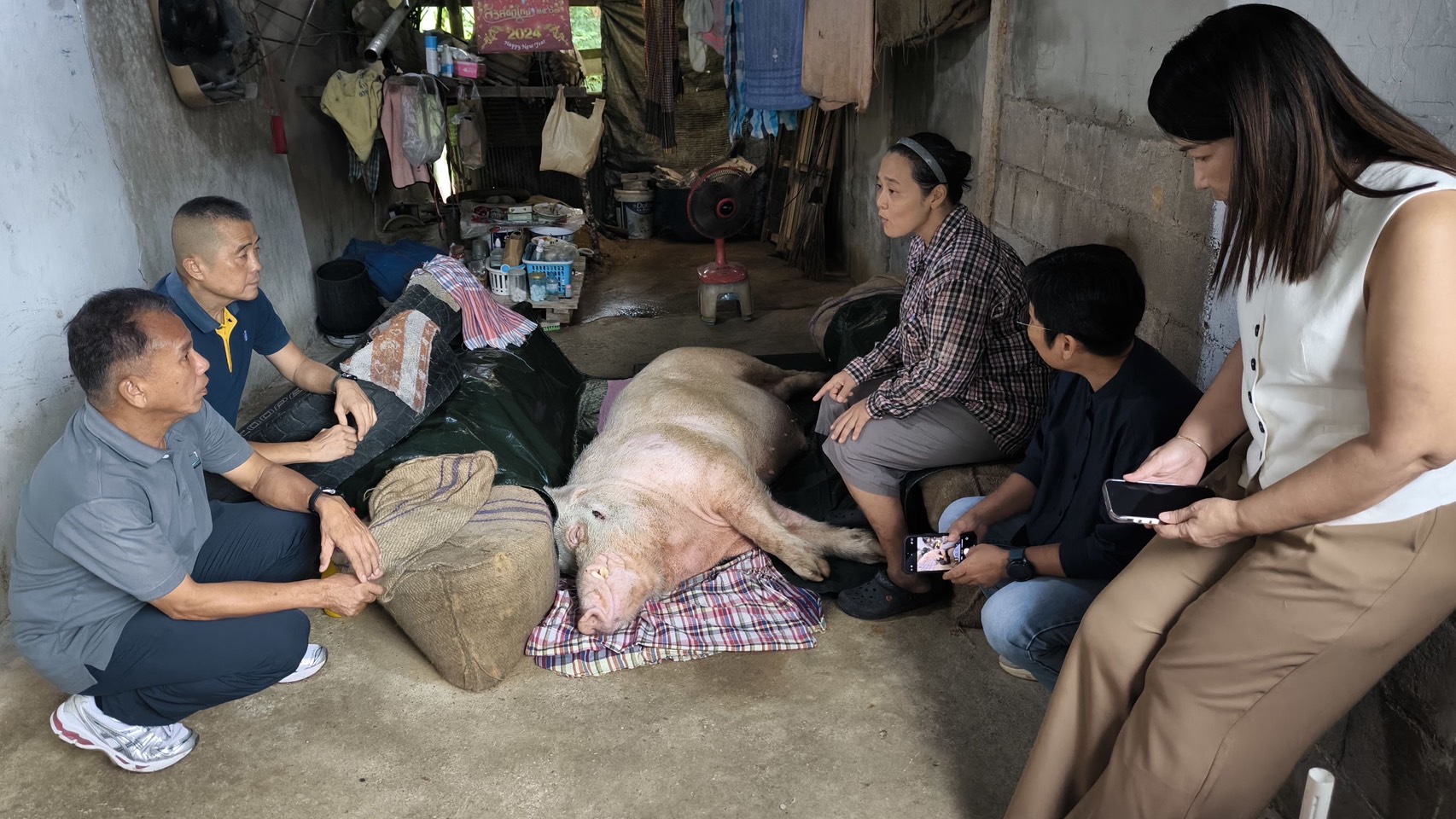 'จรัล จิตเจือจุน'และคณะ'กลุ่มเมืองแกลง' ลงดูอาการบาดเจ็บหมู'เจ้าหอมทอง'